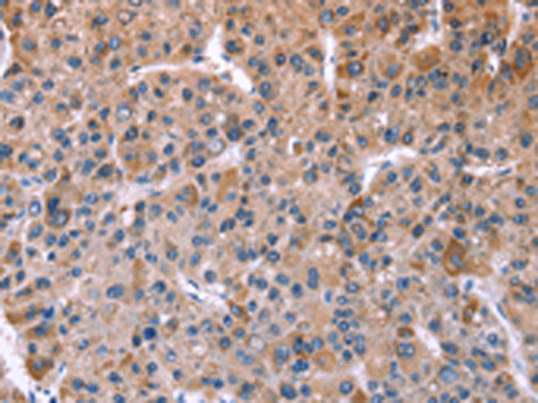 The image is immunohistochemistry of paraffin-embedded Human liver cancer tissue using P07197(CHRM1 Antibody) at dilution 1/20. (Original magnification: ×200) |