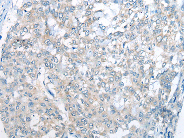 The image is immunohistochemistry of paraffin-embedded Human liver cancer tissue using P06198(CITED1 Antibody) at dilution 1/25. (Original magnification: ×200) |
