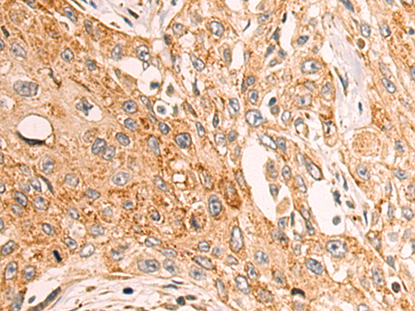 The image is immunohistochemistry of paraffin-embedded Human esophagus cancer tissue using P06842(CKMT1A/CKMT1B Antibody) at dilution 1/40. (Original magnification: ×200) |