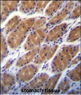 CLDN2 Antibody (C-term Y195) (Cat. #P31122)immunohistochemistry analysis in formalin fixed and paraffin embedded human stomach tissue followed by peroxidase conjugation of the secondary antibody and DAB staining.This data demonstrates the use of CLDN2 Antibody (C-term Y195) for immunohistochemistry. Clinical relevance has not been evaluated. |