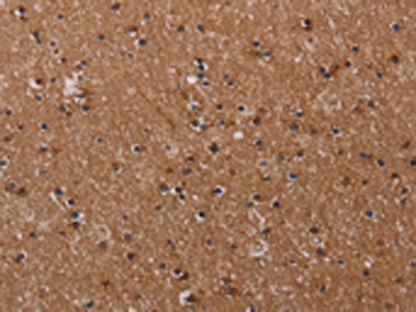 The image is immunohistochemistry of paraffin-embedded Human brain tissue using P07214(CLDND1 Antibody) at dilution 1/40. (Original magnification: ×200) |