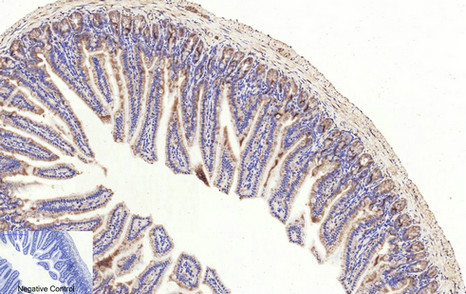 Immunohistochemistry analysis of paraffin-embedded mouse colon tissue using Cleaved-Caspase3 p17 antibody High-pressure and temperature Sodium Citrate pH 6.0 was used for antigen retrieval. |