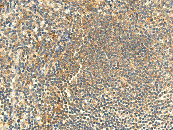 The image is immunohistochemistry of paraffin-embedded Human tonsil tissue using P07203(CLEC4D Antibody) at dilution 1/50. (Original magnification: ×200) |