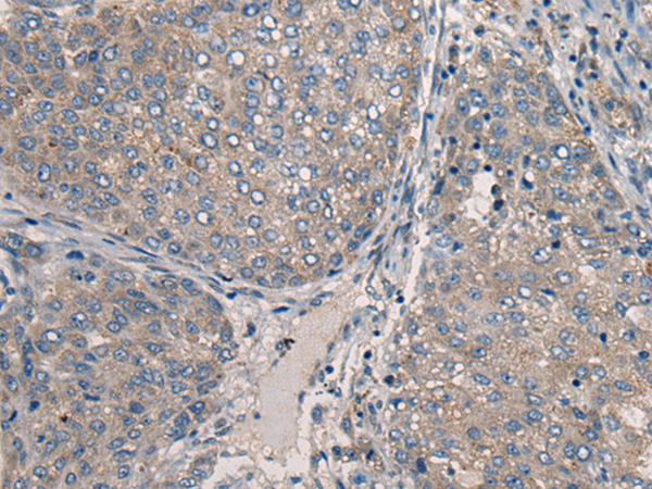 The image is immunohistochemistry of paraffin-embedded Human liver cancer tissue using P13095(CLN5 Antibody) at dilution 1/20. (Original magnification: ×200) |