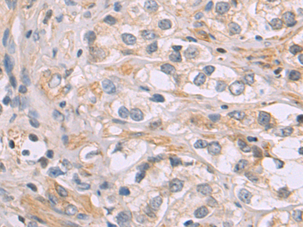 The image is immunohistochemistry of paraffin-embedded Human prostate cancer tissue using P03452(CMTR2 Antibody) at dilution 1/69. (Original magnification: ×200) |