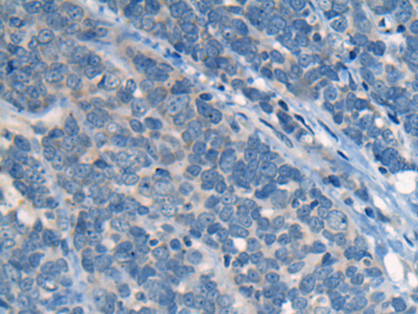 The image is immunohistochemistry of paraffin-embedded Human thyroid cancer tissue using P13100(CNGA3 Antibody) at dilution 1/25. (Original magnification: ×200) |