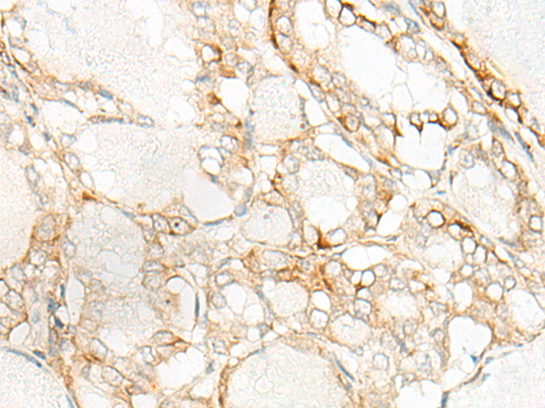 The image is immunohistochemistry of paraffin-embedded Human thyroid cancer tissue using P13293(CNOT6 Antibody) at dilution 1/20. (Original magnification: ×200) |