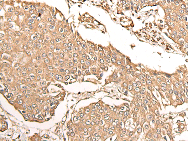 The image is immunohistochemistry of paraffin-embedded Human prostate cancer tissue using P07210(CNTFR Antibody) at dilution 1/30. (Original magnification: ×200) |