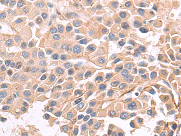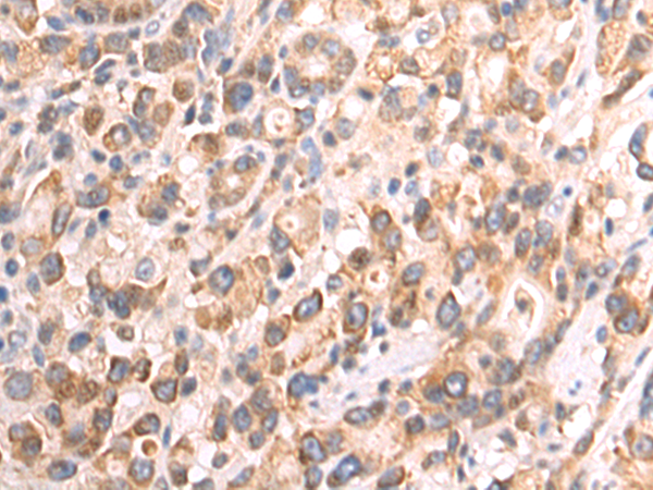The image is immunohistochemistry of paraffin-embedded Human liver cancer tissue using P07212(COL2A1 Antibody) at dilution 1/60. (Original magnification: ×200) |