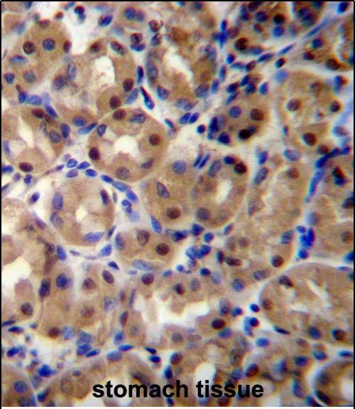 COPS2 Antibody (N-term) (Cat. #P32786)immunohistochemistry analysis in formalin fixed and paraffin embedded human stomach tissue followed by peroxidase conjugation of the secondary antibody and DAB staining.This data demonstrates the use of COPS2 Antibody (N-term) for immunohistochemistry. Clinical relevance has not been evaluated. |