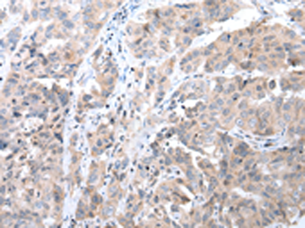 The image is immunohistochemistry of paraffin-embedded Human breast cancer tissue using P12497(COX7C Antibody) at dilution 1/20. (Original magnification: ×200) |