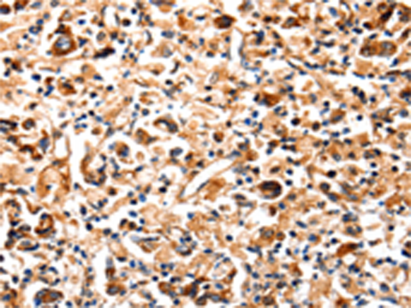 The image is immunohistochemistry of paraffin-embedded Human gastric cancer tissue using P07022(COX8A Antibody) at dilution 1/12. (Original magnification: ×200) |
