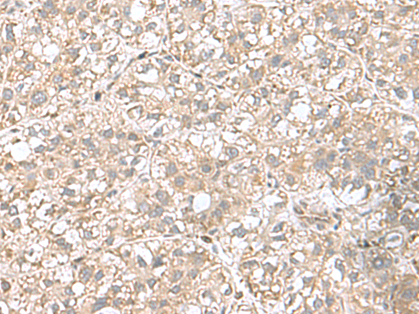 The image is immunohistochemistry of paraffin-embedded Human liver cancer tissue using P03259(CPLX3 Antibody) at dilution 1/65. (Original magnification: ×200) |