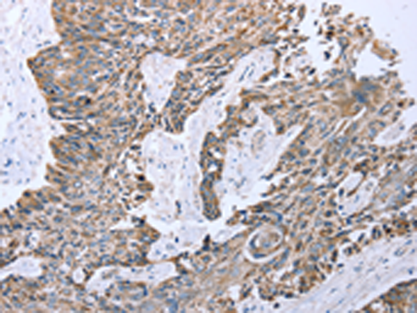 The image is immunohistochemistry of paraffin-embedded Human esophagus cancer tissue using P07219(CPT1A Antibody) at dilution 1/20. (Original magnification: ×200) |