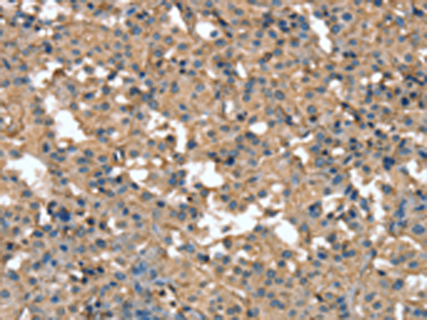 The image is immunohistochemistry of paraffin-embedded Human liver cancer tissue using P11680(CR1 Antibody) at dilution 1/25. (Original magnification: ×200) |
