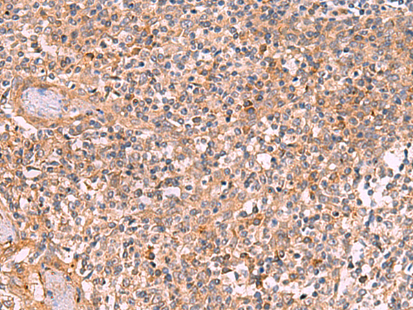 The image is immunohistochemistry of paraffin-embedded Human tonsil tissue using P13675(CREBBP Antibody) at dilution 1/35. (Original magnification: ×200) |