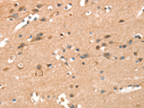 The image is immunohistochemistry of paraffin-embedded Human brain tissue using P04793(CRELD1 Antibody) at dilution 1/40. (Original magnification: ×200) |