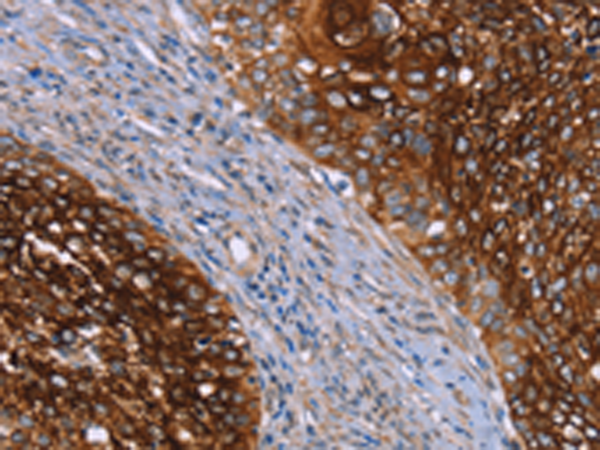 The image is immunohistochemistry of paraffin-embedded Human cervical cancer tissue using P03839(CRH Antibody) at dilution 1/20. (Original magnification: ×200) |