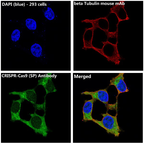 Immunofluorescence analysis of CRISPR Cas9 SP in 293T transfected with CRISPRSpCas9 using CRISPRCas9 SP antibody. |