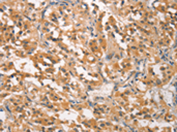 The image is immunohistochemistry of paraffin-embedded Human thyroid cancer tissue using P11684(CRKL Antibody) at dilution 1/25. (Original magnification: ×200) |