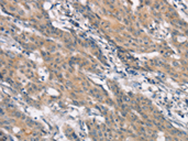 The image is immunohistochemistry of paraffin-embedded Human gastric cancer tissue using P11684(CRKL Antibody) at dilution 1/25. (Original magnification: ×200) |