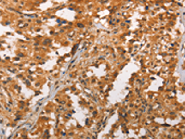 The image is immunohistochemistry of paraffin-embedded Human gasrtic cancer tissue using P04798(CRKL Antibody) at dilution 1/25. (Original magnification: ×200) |