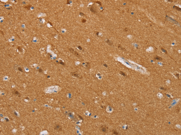 The image is immunohistochemistry of paraffin-embedded Human brain tissue using P03835(CRMP1 Antibody) at dilution 1/35. (Original magnification: ×200) |