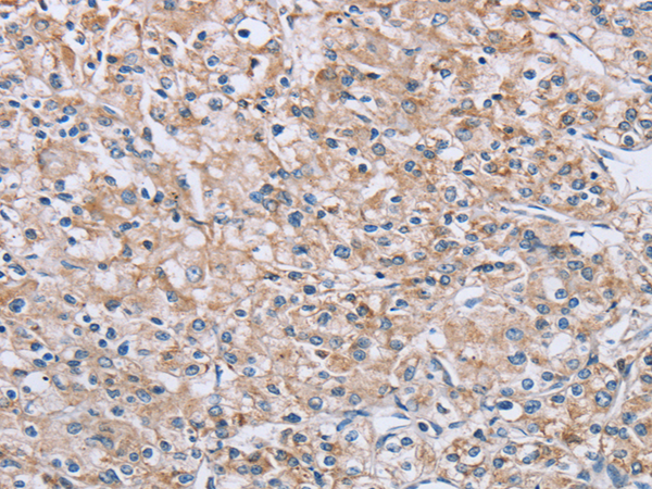 The image is immunohistochemistry of paraffin-embedded Human prostate cancer tissue using P03835(CRMP1 Antibody) at dilution 1/35. (Original magnification: ×200) |