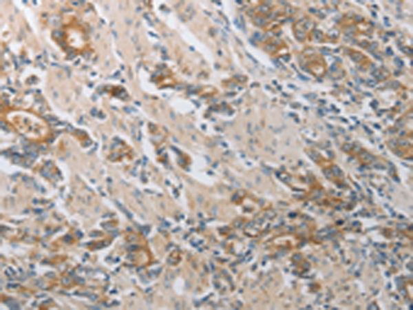 The image is immunohistochemistry of paraffin-embedded Human gasrtic cancer tissue using P03755(CST3 Antibody) at dilution 1/50. (Original magnification: ×200) |