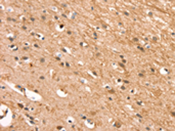 The image is immunohistochemistry of paraffin-embedded Human brain tissue using P11698(CSTB Antibody) at dilution 1/30. (Original magnification: ×200) |