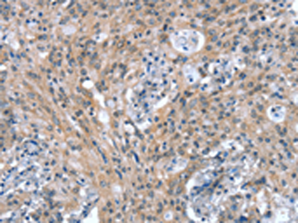 The image is immunohistochemistry of paraffin-embedded Human gasrtic cancer tissue using P11691(CTBP1 Antibody) at dilution 1/25. (Original magnification: ×200) |