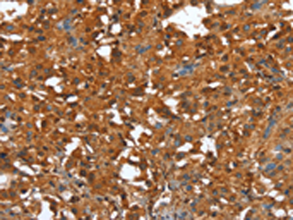 The image is immunohistochemistry of paraffin-embedded Human liver cancer tissue using P04803(CTBP1 Antibody) at dilution 1/40. (Original magnification: ×200) |