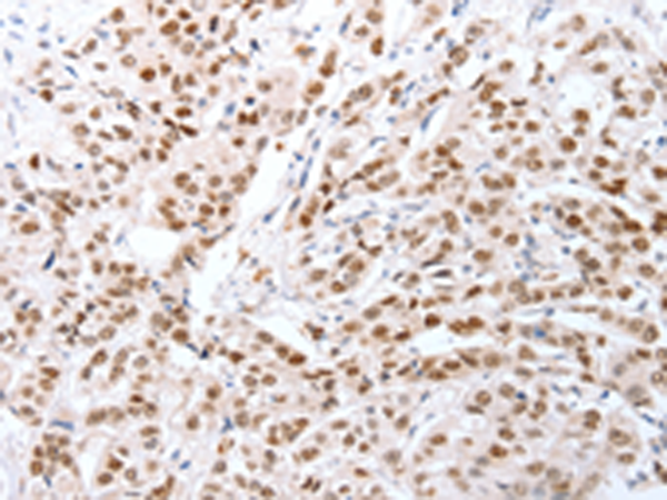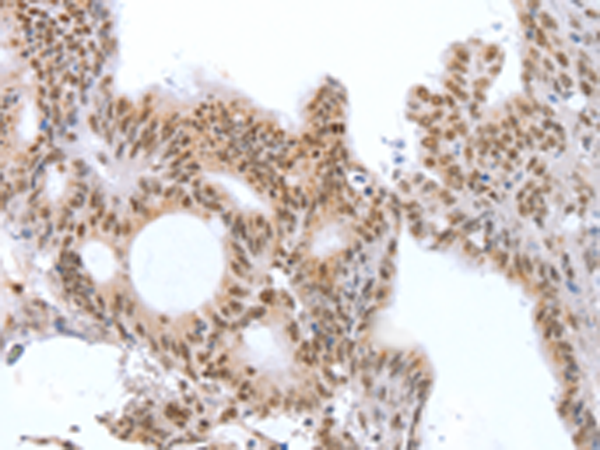 The image is immunohistochemistry of paraffin-embedded Human breast cancer tissue using P07225(CTBP2 Antibody) at dilution 1/25. (Original magnification: ×200) |