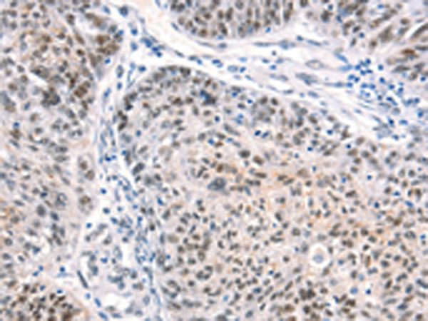 The image is immunohistochemistry of paraffin-embedded Human ovarian cancer tissue using P11692(CTBP2 Antibody) at dilution 1/40. (Original magnification: ×200) |