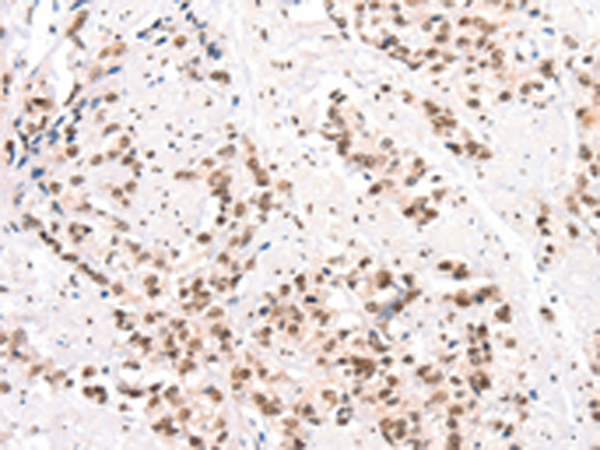 The image is immunohistochemistry of paraffin-embedded Human prostate cancer tissue using P11692(CTBP2 Antibody) at dilution 1/40. (Original magnification: ×200) |