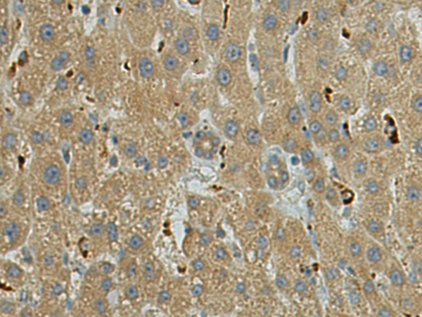 The image is immunohistochemistry of paraffin-embedded Human liver cancer tissue using P05595(CTSS Antibody) at dilution 1/40. (Original magnification: ×200) |