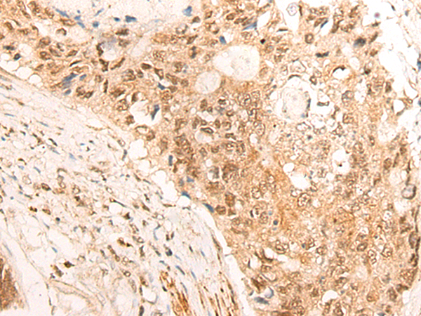 The image is immunohistochemistry of paraffin-embedded Human colorectal cancer tissue using P13219(CUX1 Antibody) at dilution 1/30. (Original magnification: ×200) |