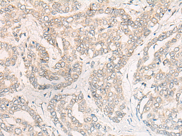 The image is immunohistochemistry of paraffin-embedded Human esophagus cancer tissue using P06337(CUX1 Antibody) at dilution 1/20. (Original magnification: ×200) |