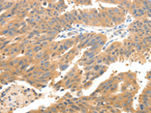 The image is immunohistochemistry of paraffin-embedded Human ovarian cancer tissue using P04446(CXCL12 Antibody) at dilution 1/20. (Original magnification: ×200) |