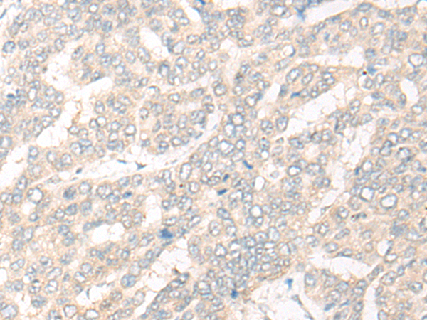 The image is immunohistochemistry of paraffin-embedded Human liver cancer tissue using P13220(CYB5D1 Antibody) at dilution 1/20. (Original magnification: ×200) |