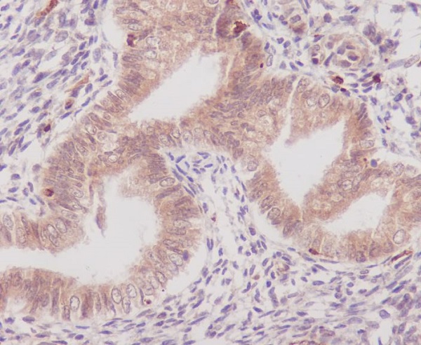 Immunohistochemistry analysis of paraffin-embedded Human uterus using COX1 antibody.High-pressure and temperature Sodium Citrate pH 6.0 was used for antigen retrieval. |