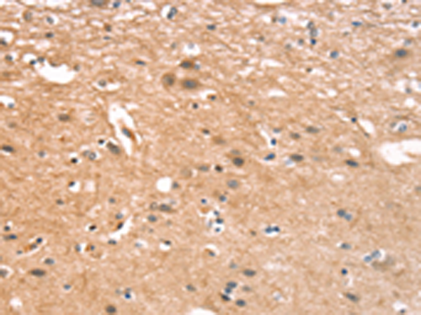 The image is immunohistochemistry of paraffin-embedded Human brain tissue using P11695(CYLD Antibody) at dilution 1/35. (Original magnification: ×200) |