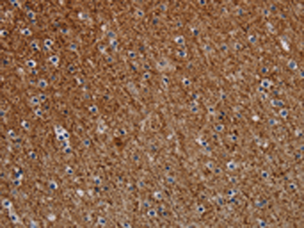 The image is immunohistochemistry of paraffin-embedded Human brain tissue using P05115(DCAF6 Antibody) at dilution 1/30. (Original magnification: ×200) |