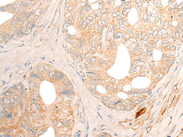 The image is immunohistochemistry of paraffin-embedded Human gastric cancer tissue using P06360(DDHD1 Antibody) at dilution 1/20. (Original magnification: ×200) |