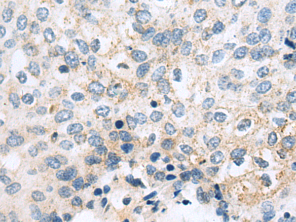The image is immunohistochemistry of paraffin-embedded Human cervical cancer tissue using P06959(DDX4 Antibody) at dilution 1/50. (Original magnification: ×200) |