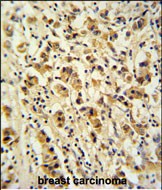 DDX49 Antibody (C-term) (Cat. #P30593) immunohistochemistry analysis in formalin fixed and paraffin embedded human breast carcinoma followed by peroxidase conjugation of the secondary antibody and DAB staining. This data demonstrates the use of the DDX49 Antibody (C-term) for immunohistochemistry. Clinical relevance has not been evaluated. |
