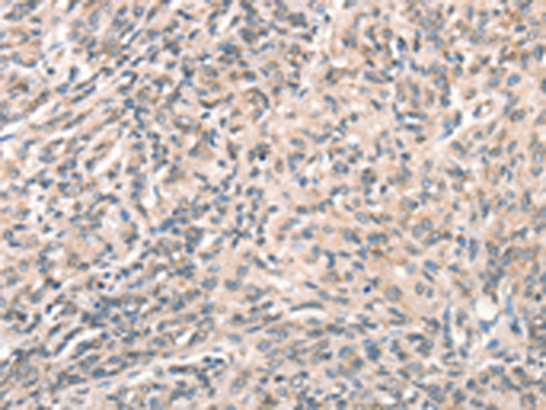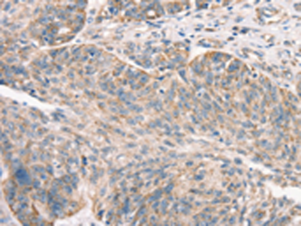 The image is immunohistochemistry of paraffin-embedded Human ovarian cancer tissue using P04820(DECR1 Antibody) at dilution 1/50. (Original magnification: ×200) |