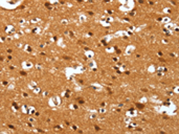 The image is immunohistochemistry of paraffin-embedded Human brain tissue using P11710(DEFA4 Antibody) at dilution 1/40. (Original magnification: ×200) |