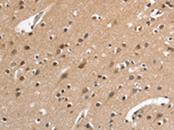 The image is immunohistochemistry of paraffin-embedded Human brain tissue using P11559(DEFA5 Antibody) at dilution 1/15. (Original magnification: ×200) |