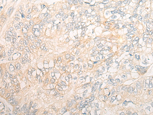 The image is immunohistochemistry of paraffin-embedded Human gastric cancer tissue using P13260(DEPTOR Antibody) at dilution 1/20. (Original magnification: ×200) |